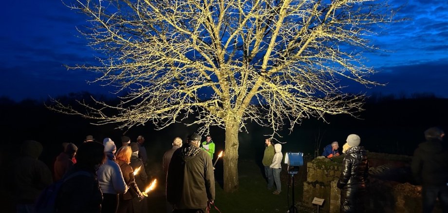 Den Besuchern wird ein kleiner Rundgang mit Fackeln entlang der Grenzen des mit Laternen und Feuerkörben partiell stimmungsvoll beleuchteten Haselburggeländes geboten. Vorstand Dr. Michael Ditter vermittelt wissenswertes zu Leben und Kultur in römischer Zeit.