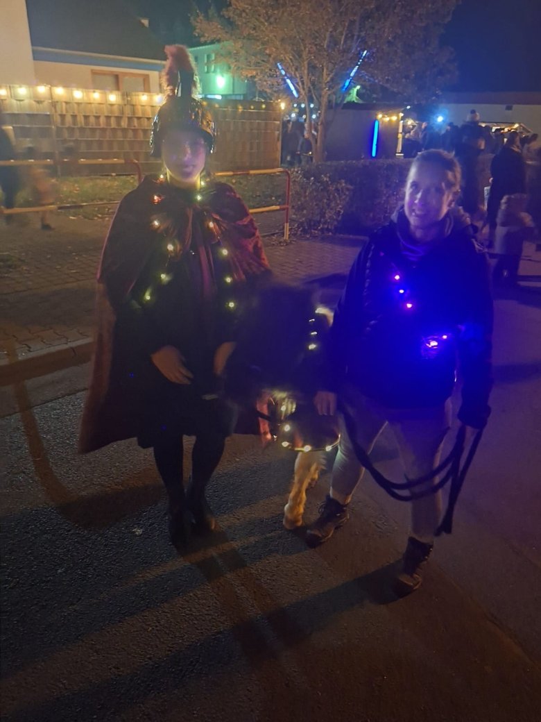 Ein weiterer Höhepunkt war das Erscheinen von Sankt Martin, dargestellt von Shania Windrich, die mit ihrem kleinen „Ross“ die Kinder begrüßte. Gemeinsam setzte sich der lange Laternenzug in Bewegung und zog singend durch die Höchster Straßen bis zum Kindergarten. In diesem Jahr wurden alle dabei erstmals zusätzlich von zwei Musikerinnen von KidsKulturSpaß begleitet, die mit Gesang und Geige dem Umzug eine besondere, musikalische Note verliehen –und die auch am Kindergarten weiterspielten und mit ihren Melodien den gesamten Abend auf wunderbare Weise bereicherten.