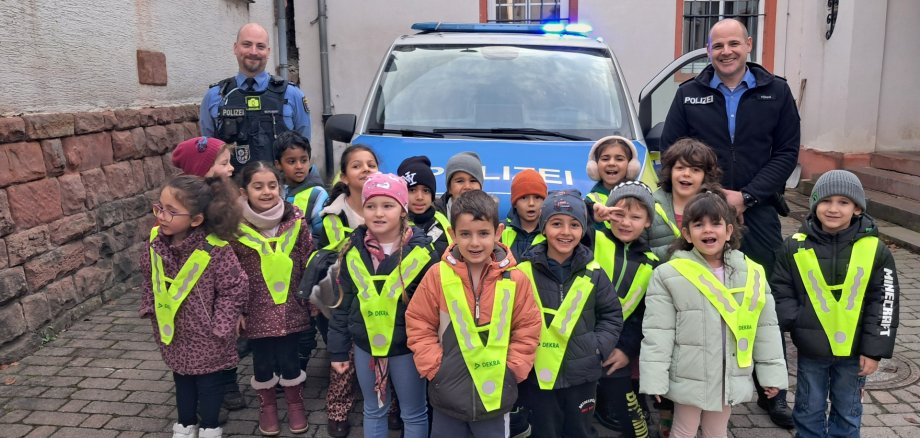 Vorschulkinder der Kita Hetschbach entdecken die Welt der Polizei bei der Polizeistation Höchst