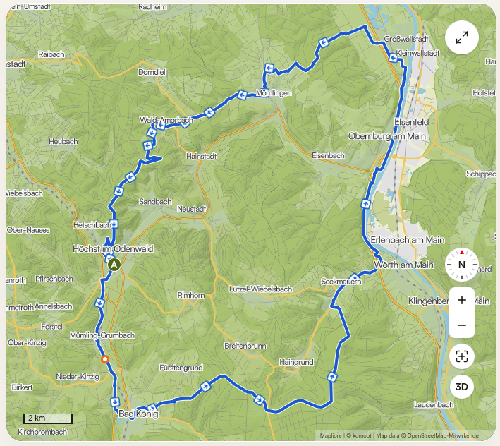 Höchst, Hainhaus-Windräder, Einkehr Weingut Harald Gunther Großwallstadt, Mömlingen, Frankfurter-Straße zurück zum Start