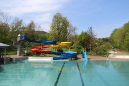 Eine über 75 m lange Großwasserrutsche sowie eine kleinere Wasserrutsche.