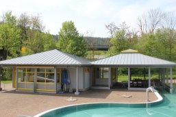 Die gesamte Badeanlage des beheizten Freibades umfasst: